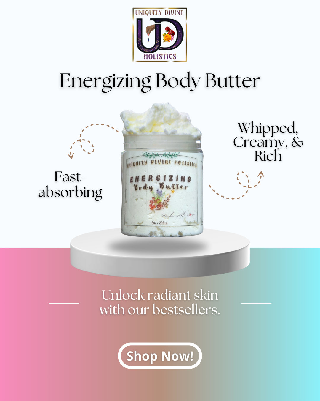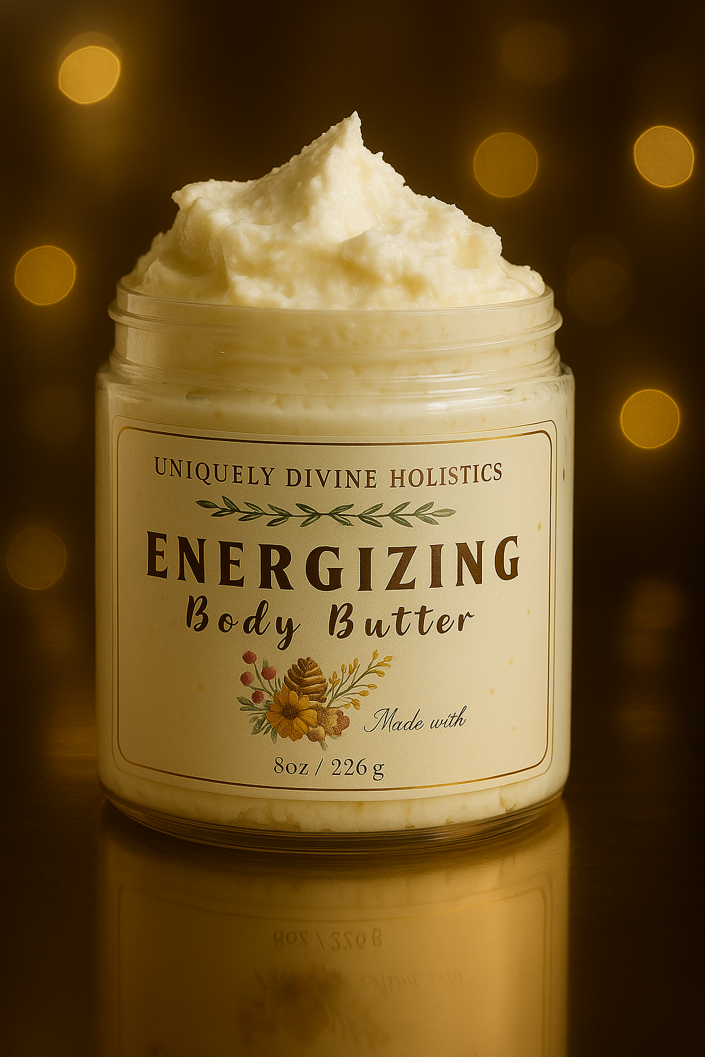Revive your skin and your senses with our Energizing Body Butter — a luxurious, hand-whipped blend crafted to deeply nourish, hydrate, and restore dry, tired skin. Infused with a vibrant blend of essential oils and botanicals, this butter melts into your skin, leaving it soft, glowing, and rrefreshed.